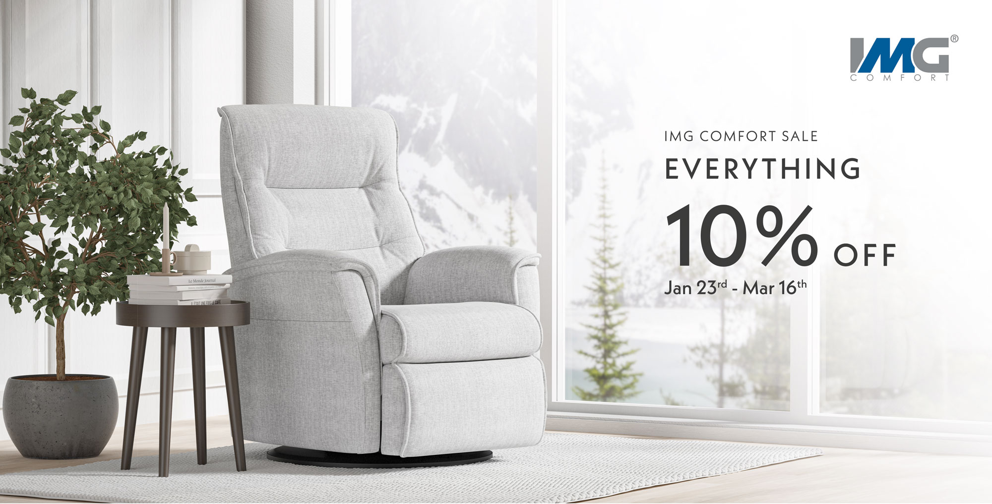Save 10% Off regular prices on all furniture by IMG now through March 16th. Save on In-stock Items or Special Orders. Contemporary Galleries is honored to offer an assortment of recliner from IMG. IMG is a part of the Ekornes AS group, and their passion is to engineer and design furniture that delivers world leading comfort and back-saving ergonomic support.