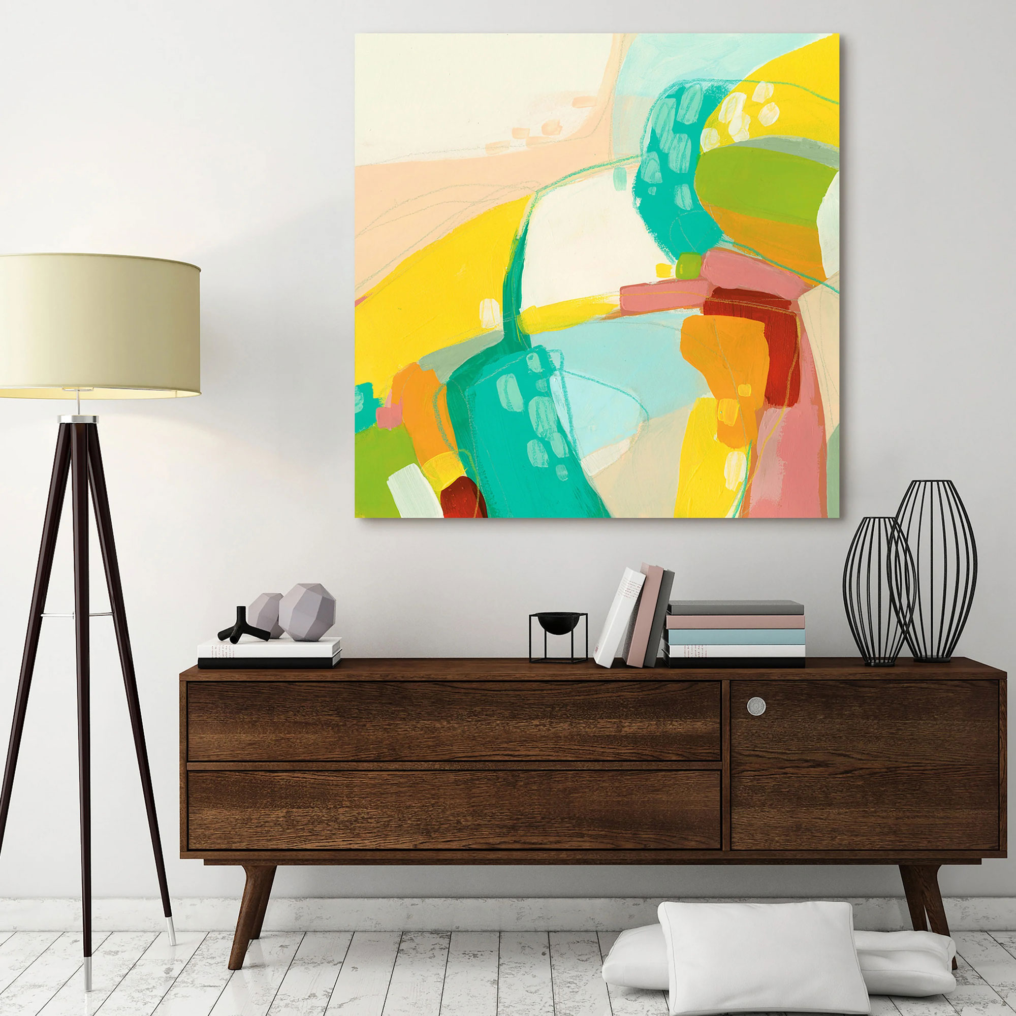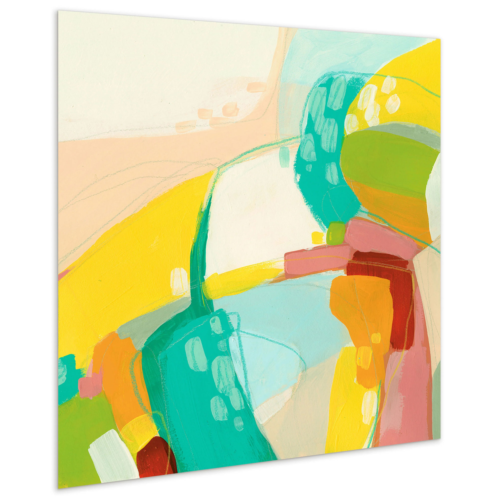 Tempered art glass that is 0.16" thick Frameless & free floating for a unique look Hangs horizontal or vertical Hooks on the backside for easy mounting 38" Width 38" Height