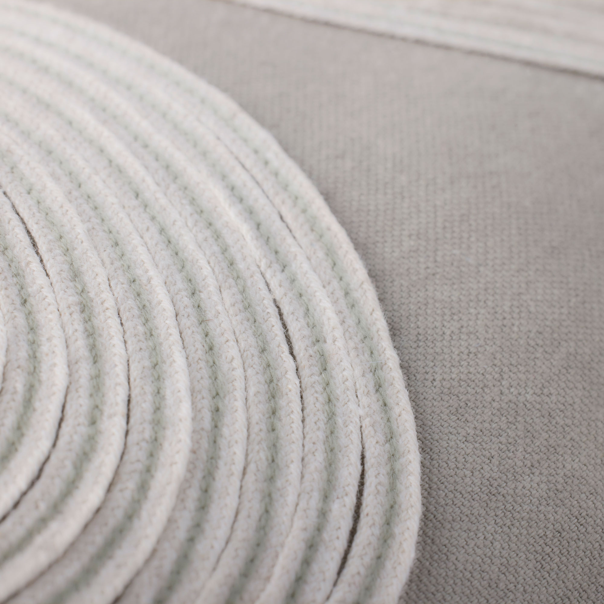 Genuine mustard colored suede leather band on the face Solid cream color back 48% Wool, 32% Cotton, 20% Genuine leather Zipper enclosure 100% Polyester fiber fill insert Made in India 17" Width 17" Height