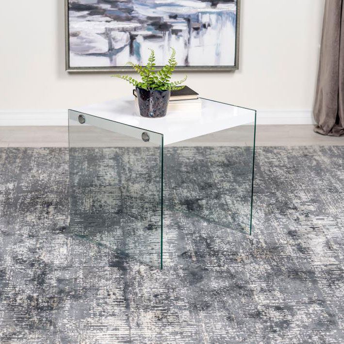 GLOSS WHITE END TABLE WITH GLASS SIDES