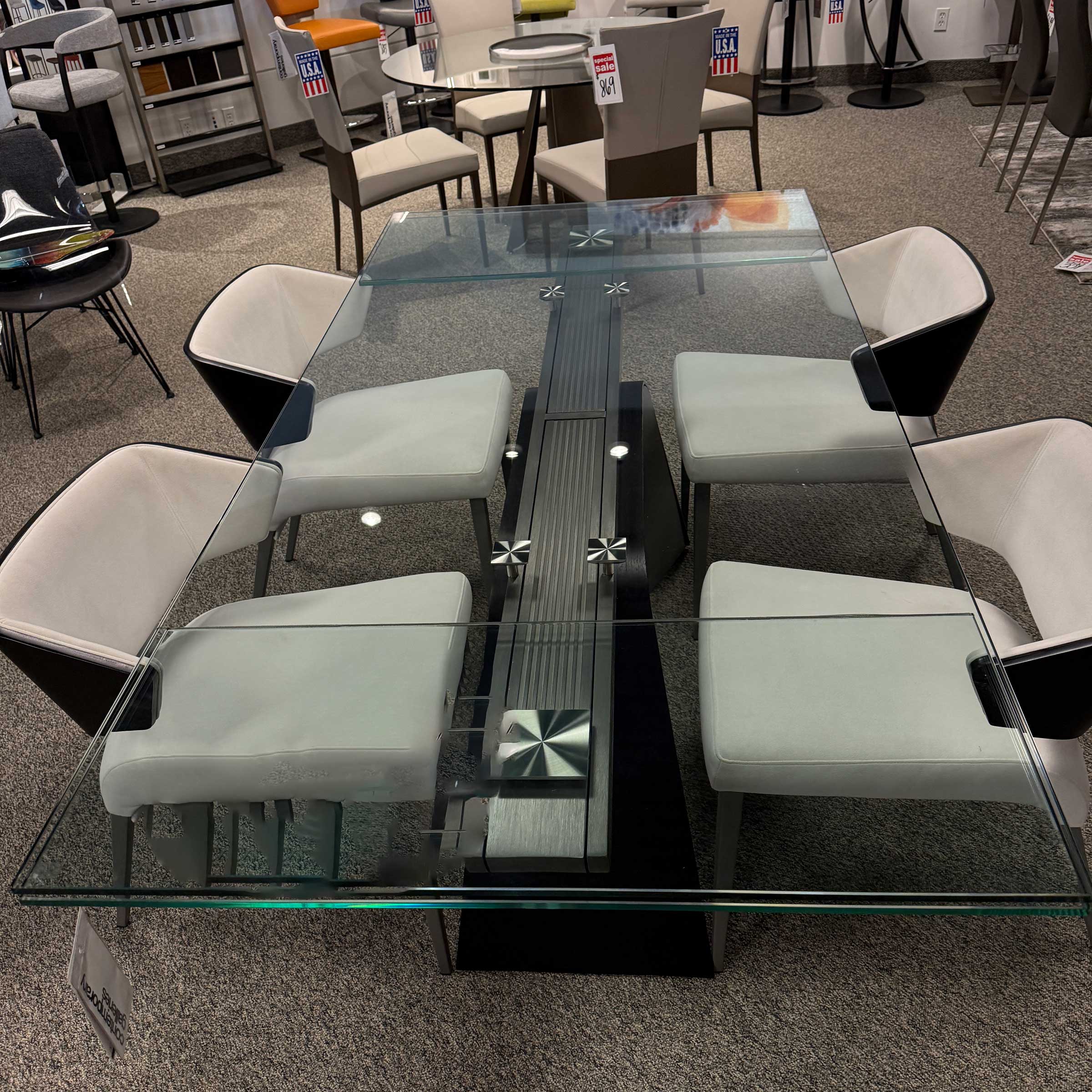 1/2″ thick tempered clear glass top expands from 65″-97″