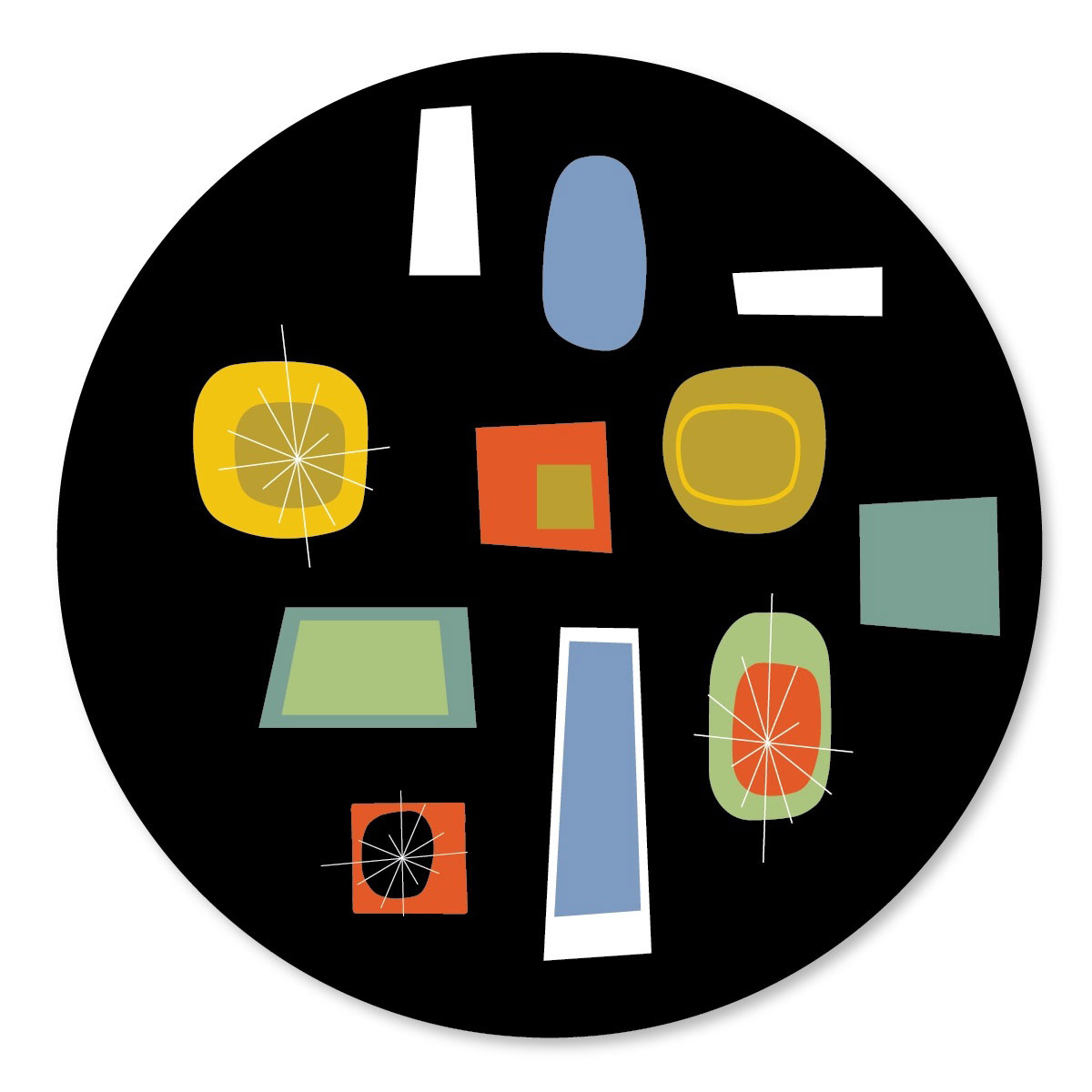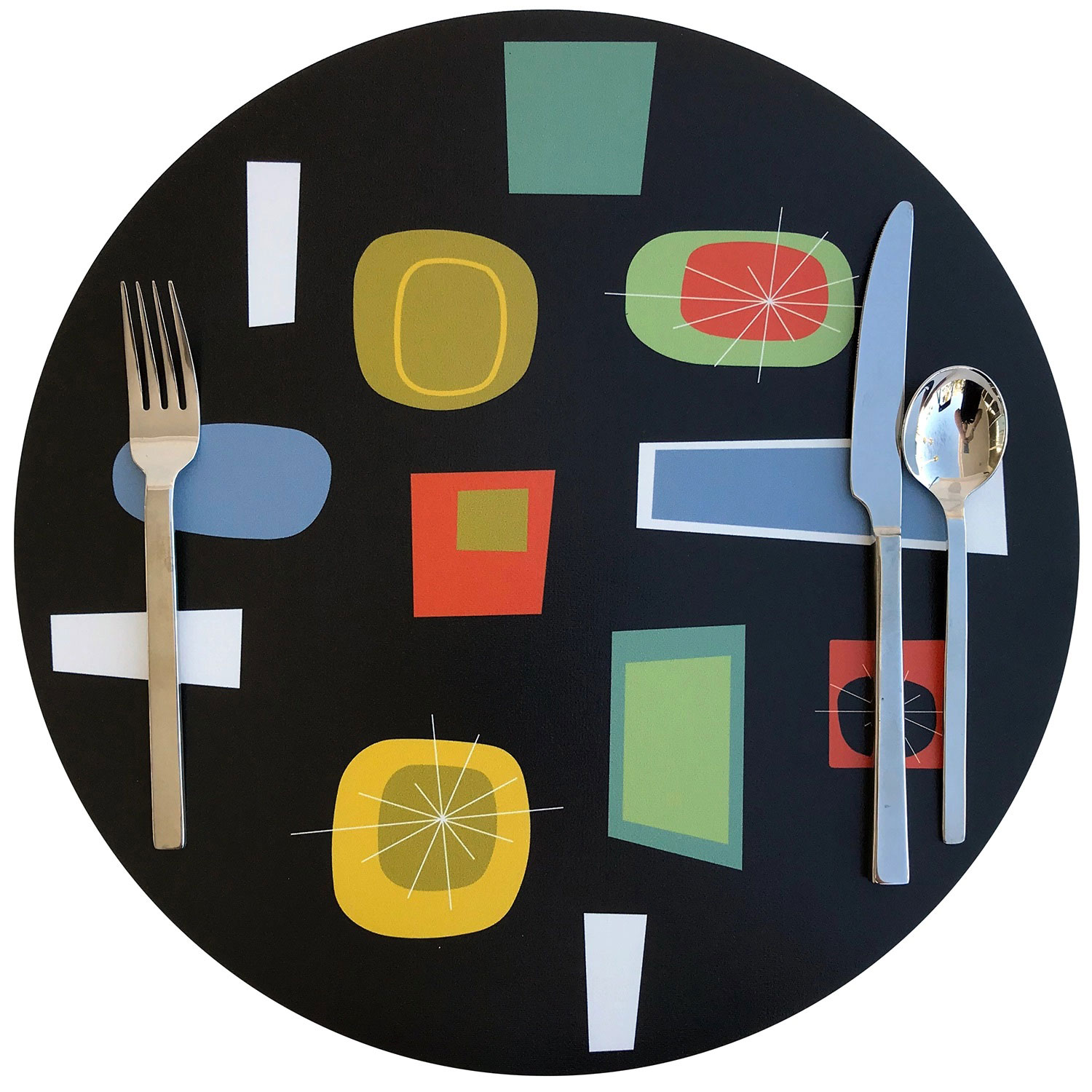 MID-CENTURY MODERN ATOMIC DESIGN ROUND PLACEMAT BLACK