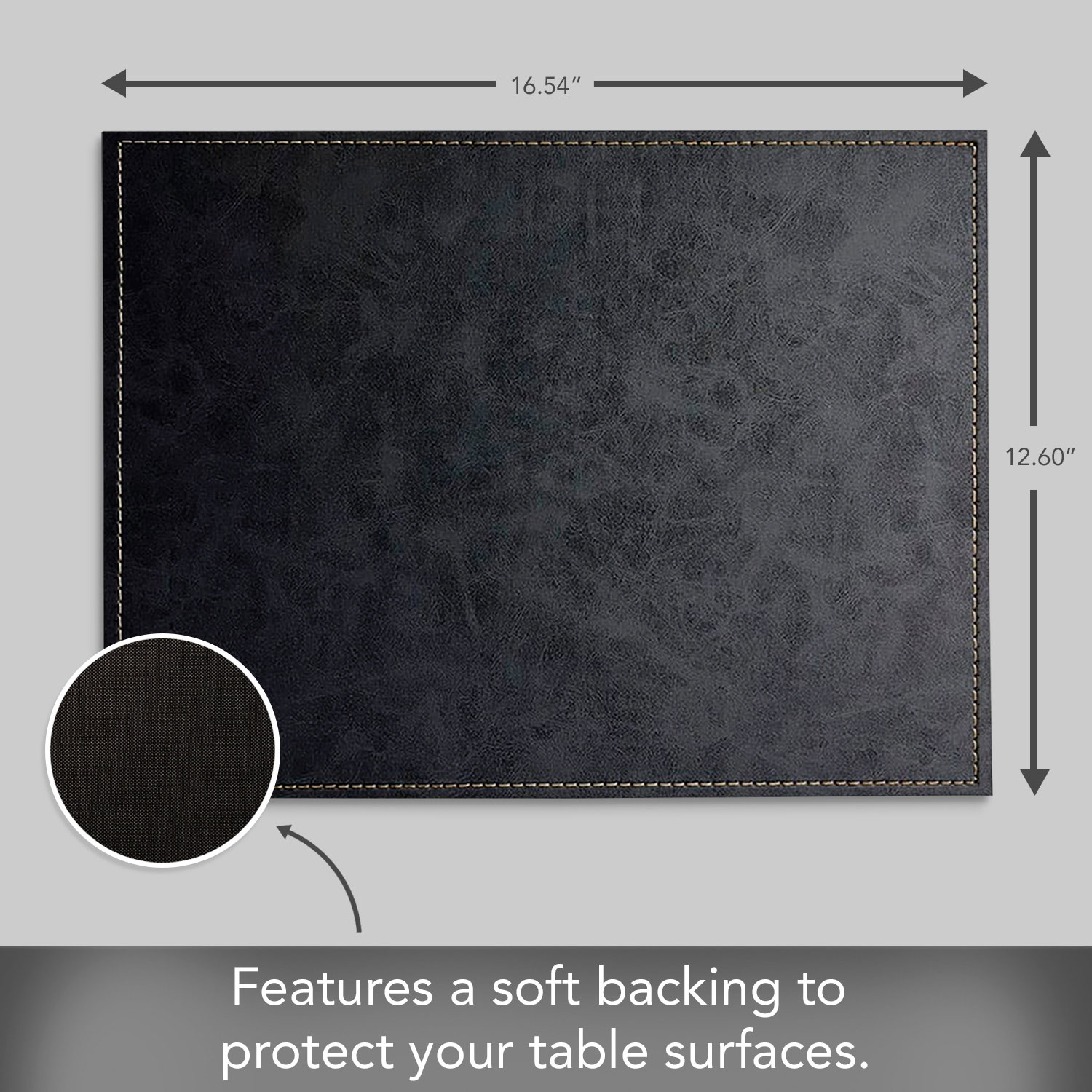Saddle stitched edges & soft backing to protect your table